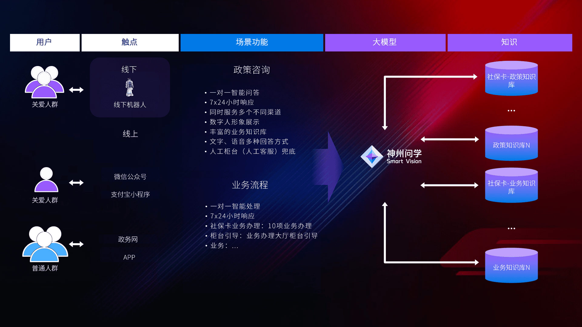 • 线上线下全覆盖:线上提供微信公众号、、、支付宝小程序、、、政务网、、app多种渠道,,,与线下机器人形成完整服务体系。。。。